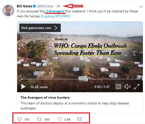 أنظر كيف استغل بيل جيتس (ثاني أغنى شخص في العالم ومؤسس شركة مايكروسوفت) حدث عرض الفيلم المشهور “المنتقمون” بغرض التوعية لخطر فيرس ايبولا، والاشادة بالاطباء الذين يسعون لمواجهته.